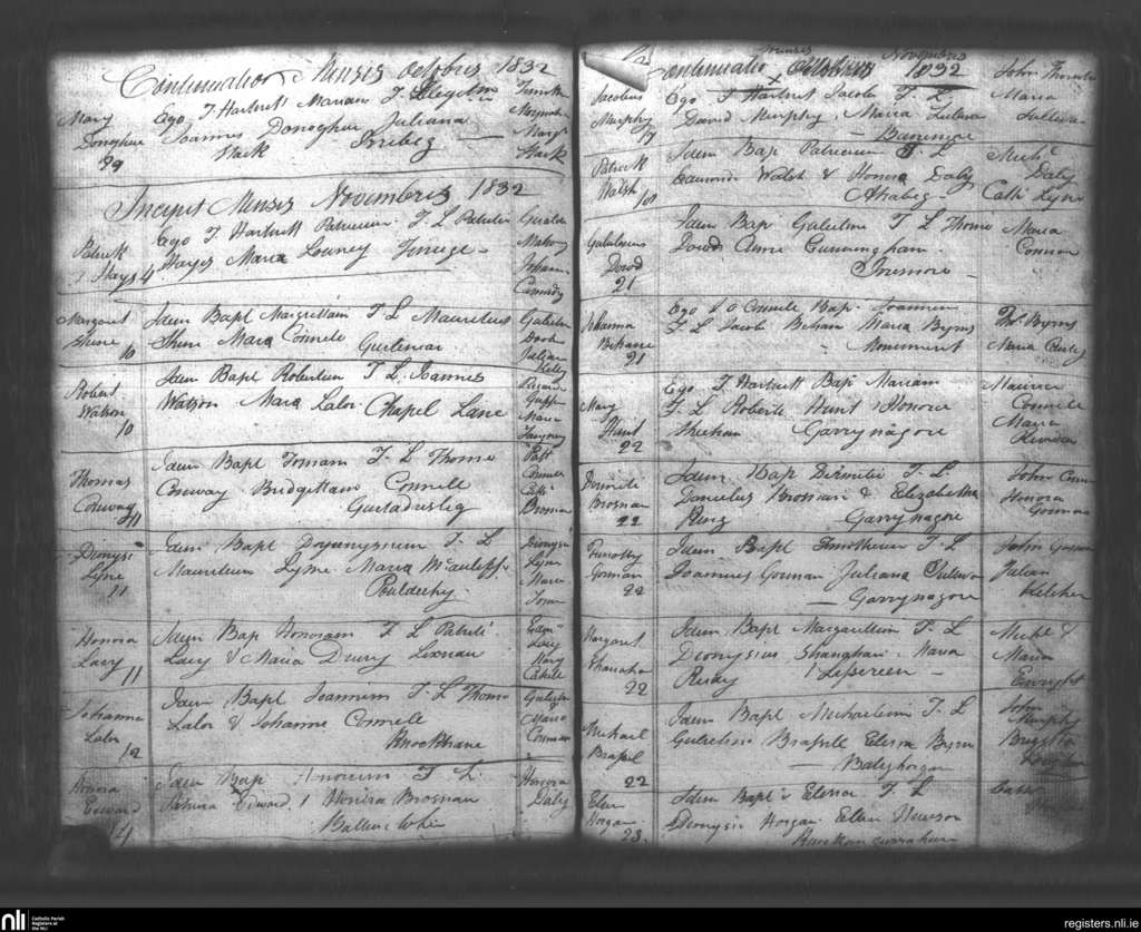 Lixnaw; County of Kerry; Diocese of Kerry. Baptisms, Oct. 1832 to Nov. 1832