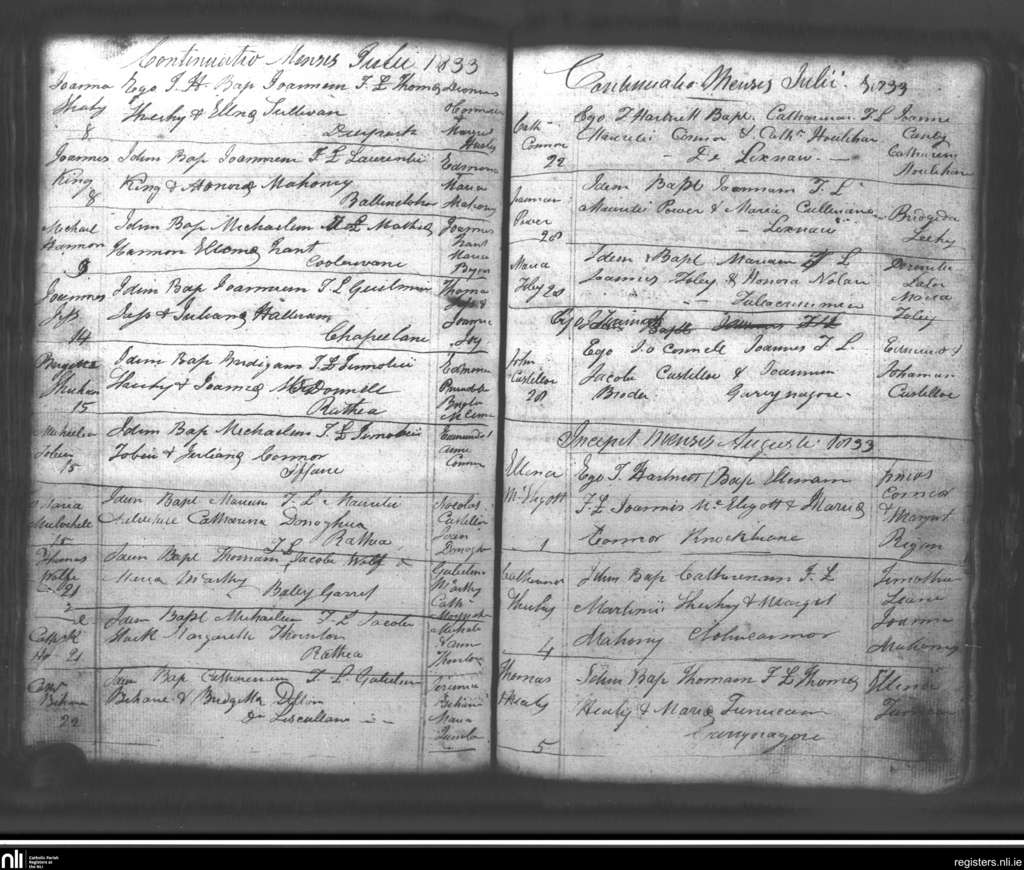 Lixnaw; County of Kerry; Diocese of Kerry. Baptisms, July 1833 to Aug. 1833