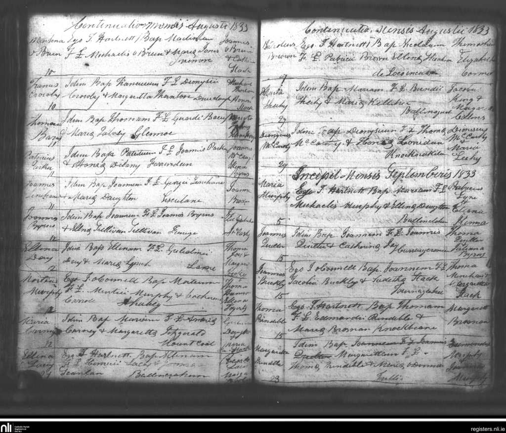 Lixnaw; County of Kerry; Diocese of Kerry. Baptisms, Aug. 1833 to Sep. 1833