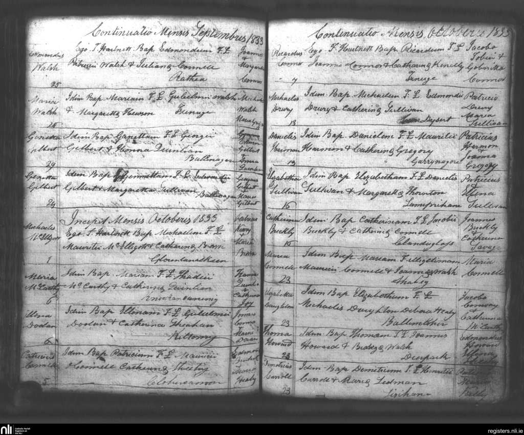 Lixnaw; County of Kerry; Diocese of Kerry. Baptisms, Sep. 1833 to Oct. 1833