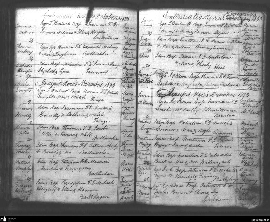 Lixnaw; County of Kerry; Diocese of Kerry. Baptisms, Oct. 1833 to Dec. 1833