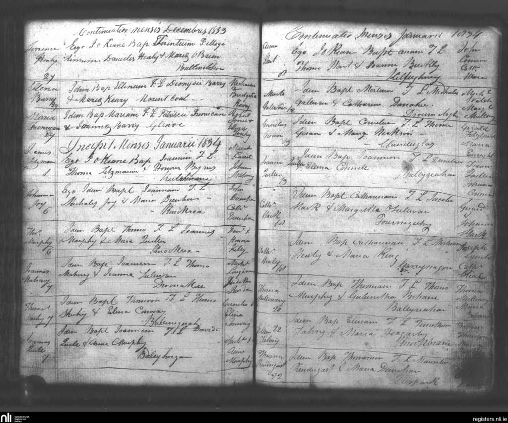 Lixnaw; County of Kerry; Diocese of Kerry. Baptisms, Dec. 1833 to Jan. 1834