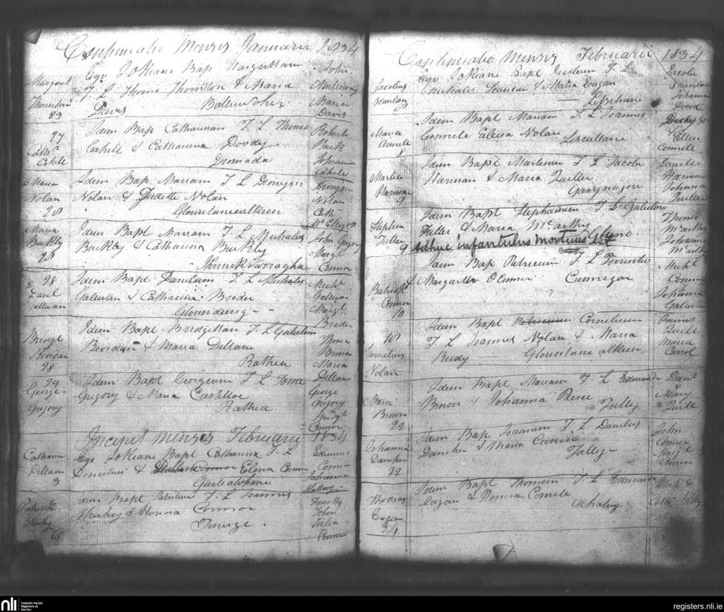 Lixnaw; County of Kerry; Diocese of Kerry. Baptisms, Jan. 1834 to Feb. 1834