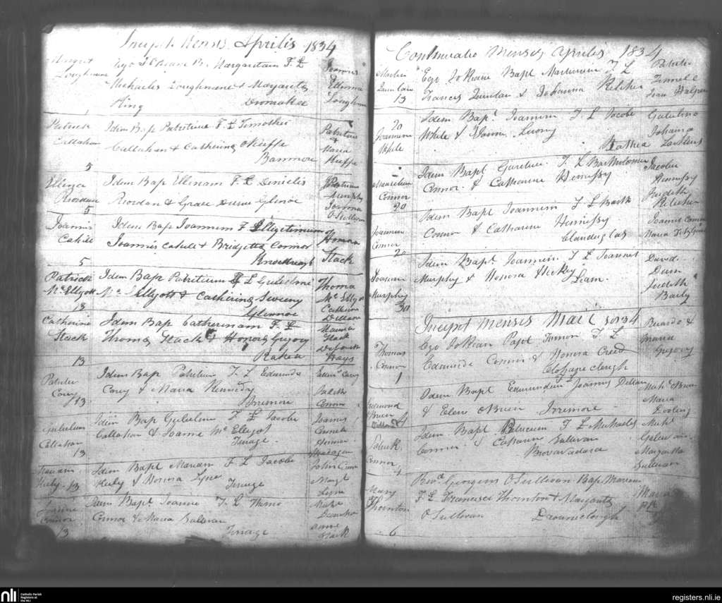Lixnaw; County of Kerry; Diocese of Kerry. Baptisms, Apr. 1834 to May 1834
