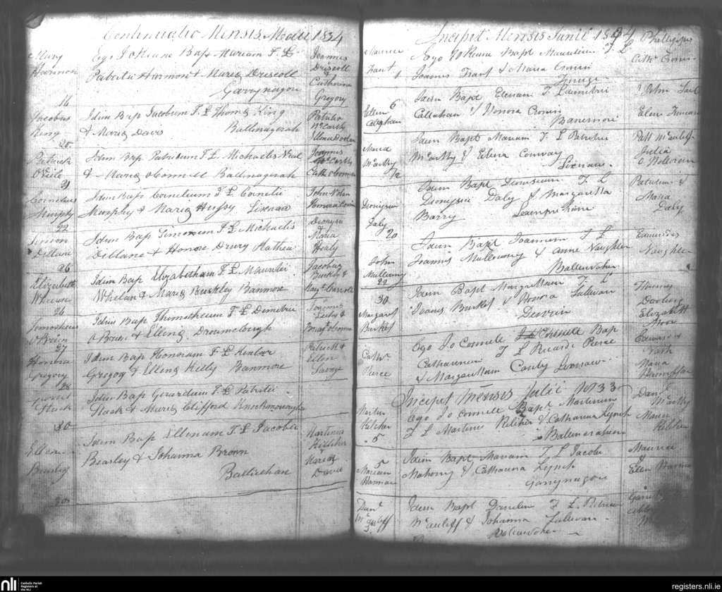 Lixnaw; County of Kerry; Diocese of Kerry. Baptisms, May 1834 to July 1834