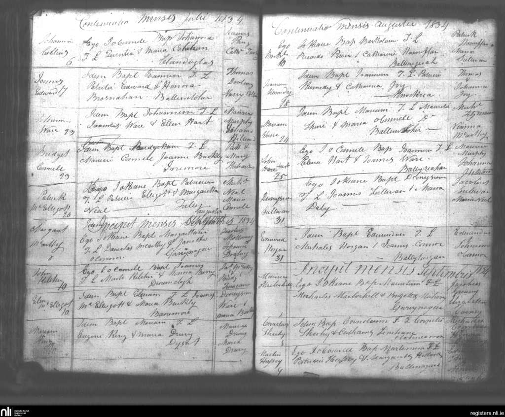 Lixnaw; County of Kerry; Diocese of Kerry. Baptisms, July 1834 to Sep. 1834