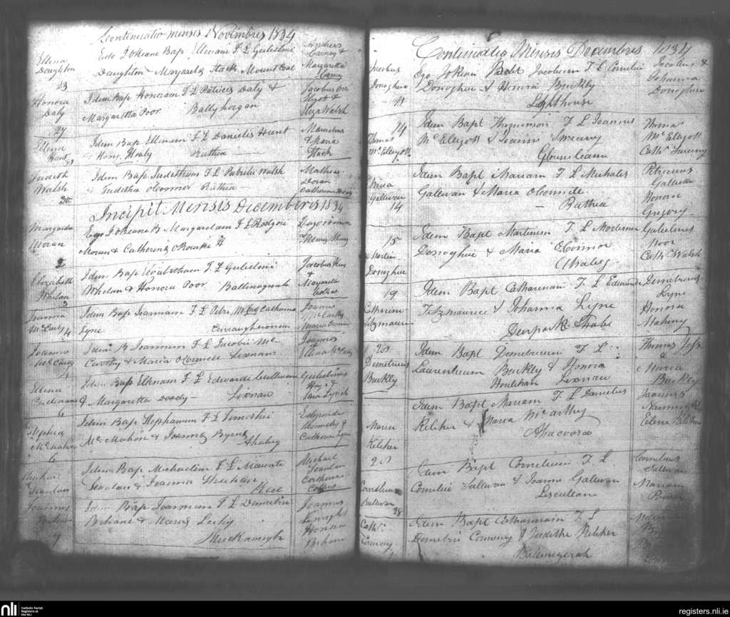Lixnaw; County of Kerry; Diocese of Kerry. Baptisms, Nov. 1834 to Dec. 1834