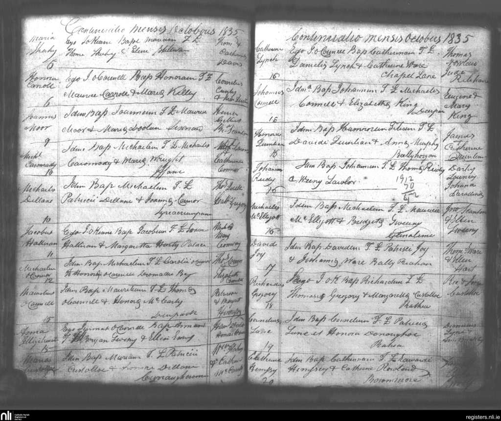 Lixnaw; County of Kerry; Diocese of Kerry. Baptisms, Oct. 1835