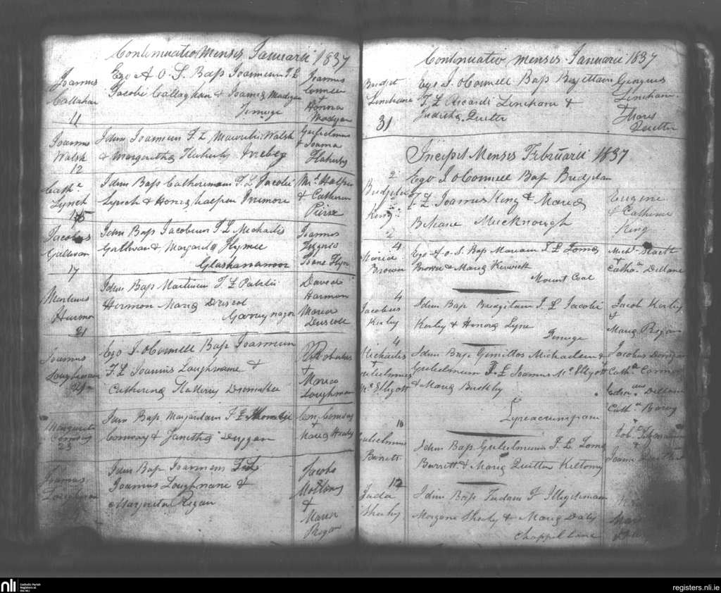 Lixnaw; County of Kerry; Diocese of Kerry. Baptisms, Jan. 1837 to Feb. 1837