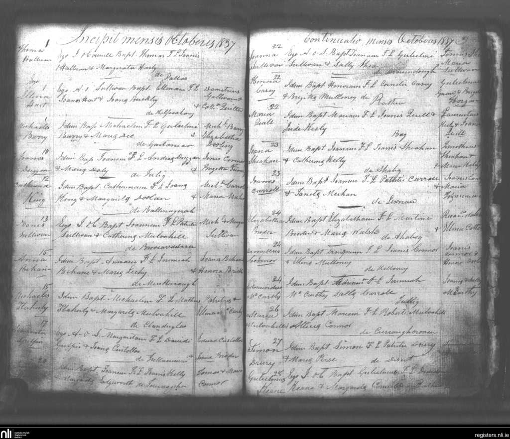 Lixnaw; County of Kerry; Diocese of Kerry. Baptisms, Oct. 1837