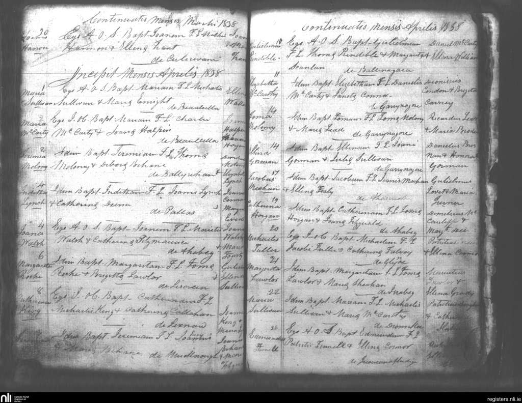 Lixnaw; County of Kerry; Diocese of Kerry. Baptisms, Mar. 1838 to Apr. 1838