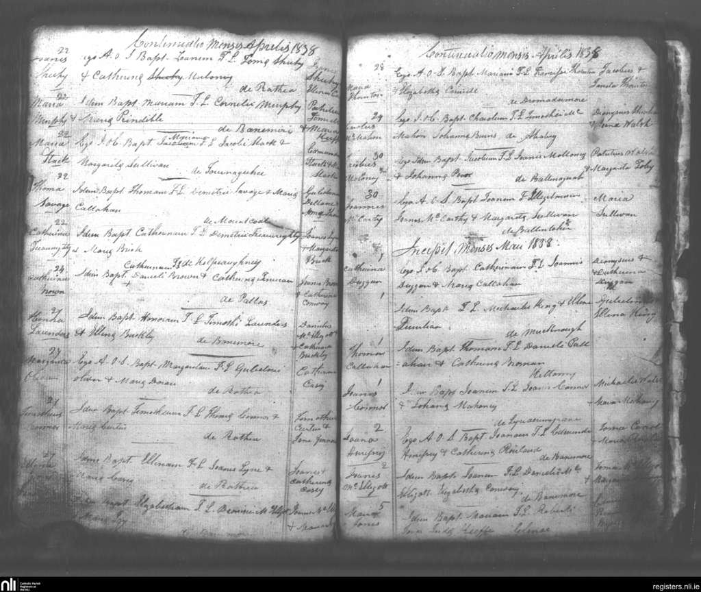 Lixnaw; County of Kerry; Diocese of Kerry. Baptisms, Apr. 1838 to May 1838