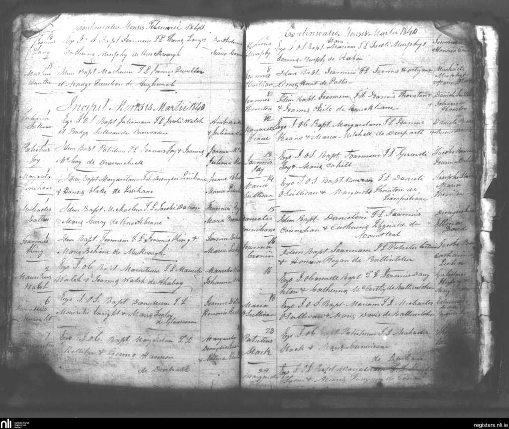 Lixnaw; County of Kerry; Diocese of Kerry. Baptisms, Feb. 1840 to Mar. 1840