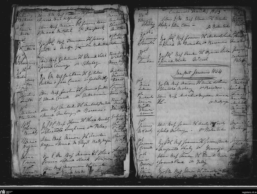 Lixnaw; County of Kerry; Diocese of Kerry. Baptisms, Sep. 1843 to Jan. 1844