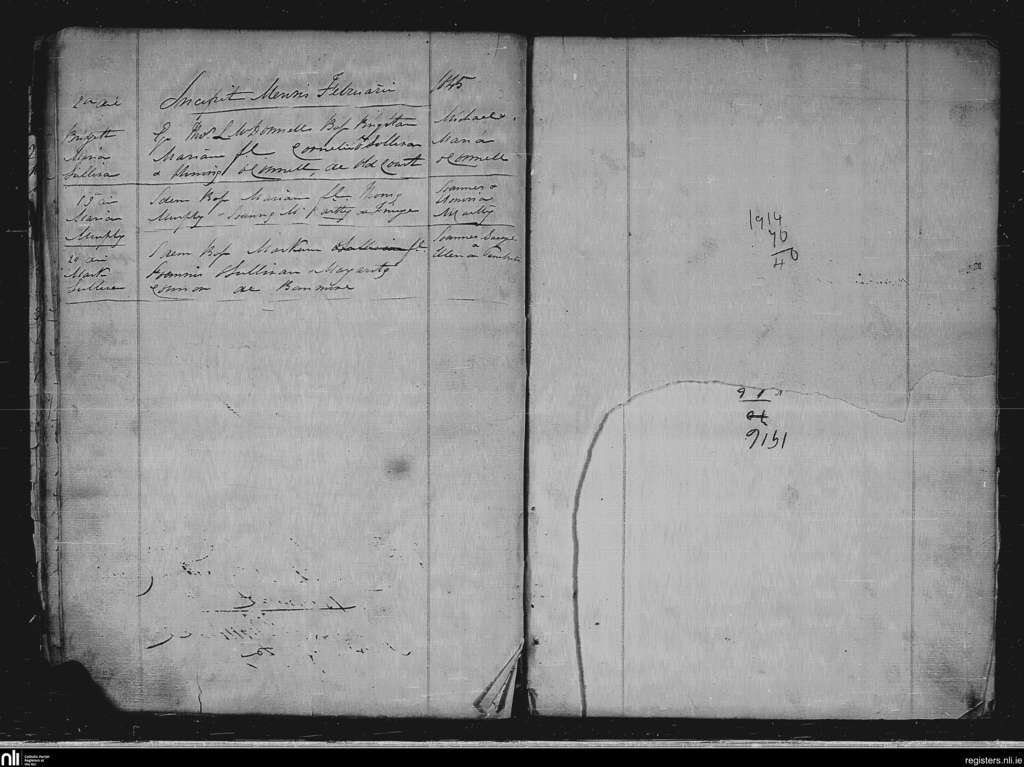 Lixnaw; County of Kerry; Diocese of Kerry. Baptisms, Feb. 1845