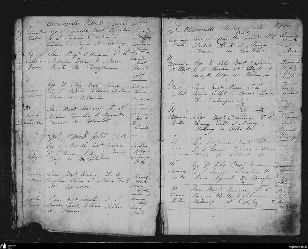 Lixnaw; County of Kerry; Diocese of Kerry. Baptisms, June 1850 to July 1850