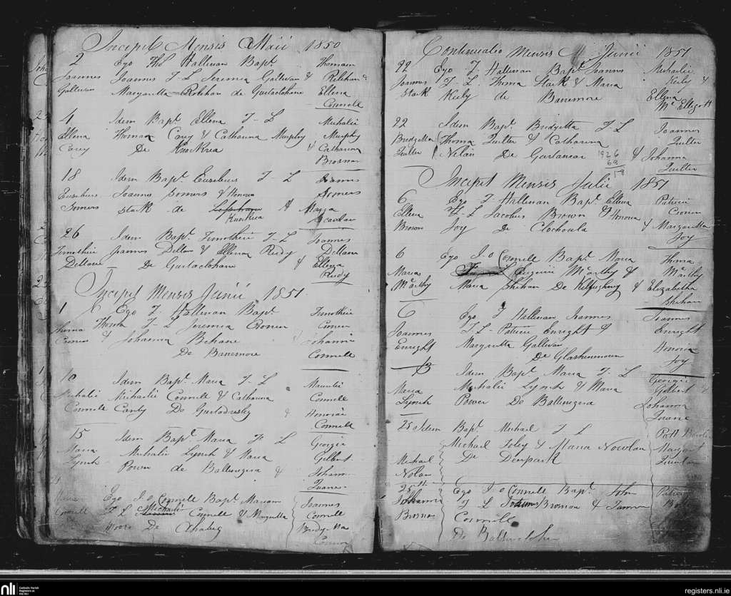 Lixnaw; County of Kerry; Diocese of Kerry. Baptisms, May 1851 to July 1851