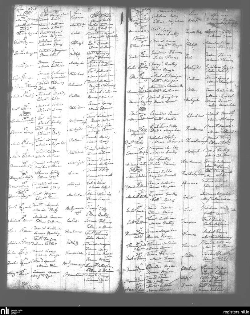 Kilcummin; County of Kerry; Diocese of Kerry. Baptisms, Aug. 1832 to Feb. 1833