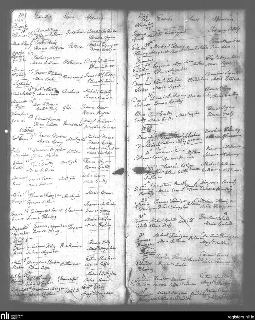 Kilcummin; County of Kerry; Diocese of Kerry. Baptisms, Aug. 1846 to Feb. 1847