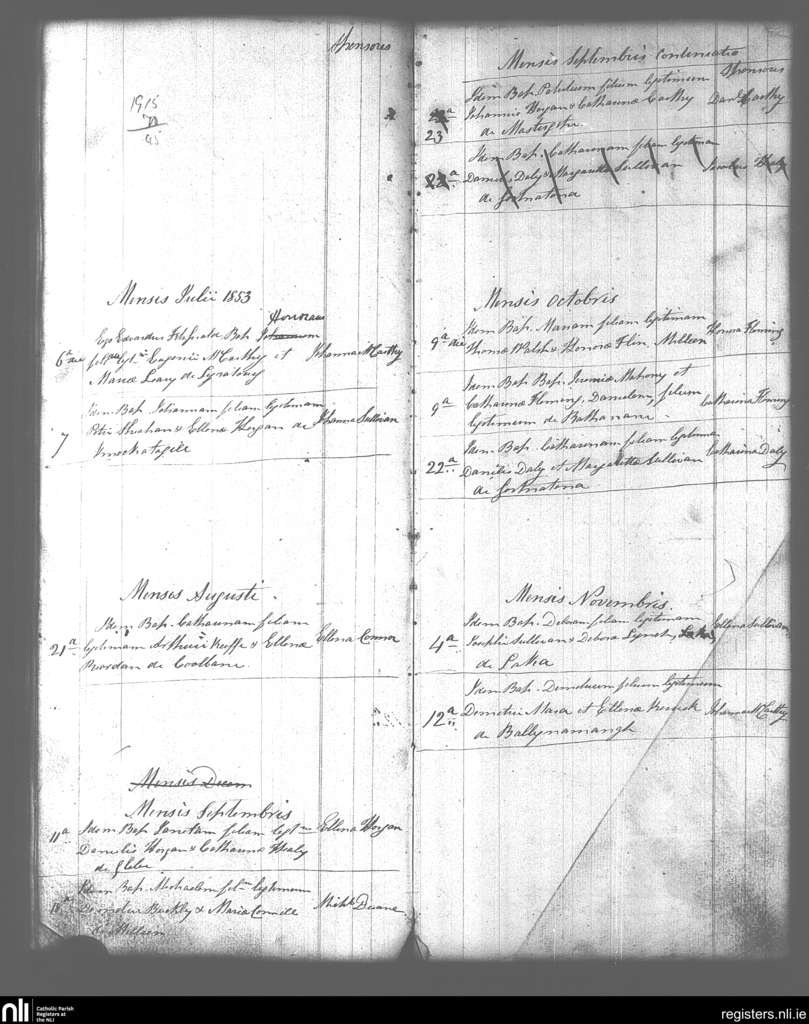Kilcummin; County of Kerry; Diocese of Kerry. Baptisms, July 1853 to Nov. 1853