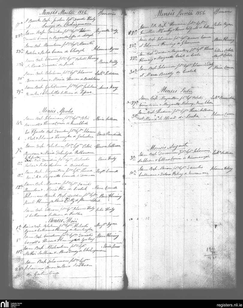 Kilcummin; County of Kerry; Diocese of Kerry. Baptisms, Mar. 1856 to Aug. 1856