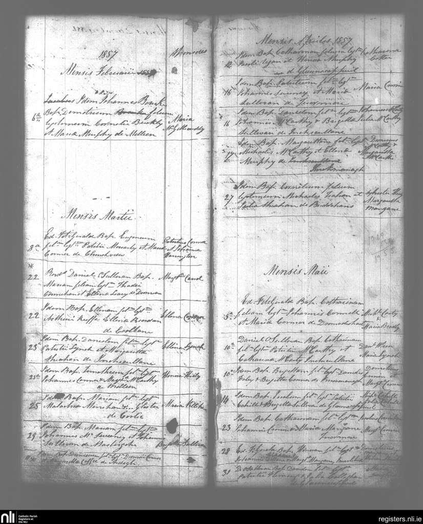 Kilcummin; County of Kerry; Diocese of Kerry. Baptisms, Feb. 1857 to May 1857