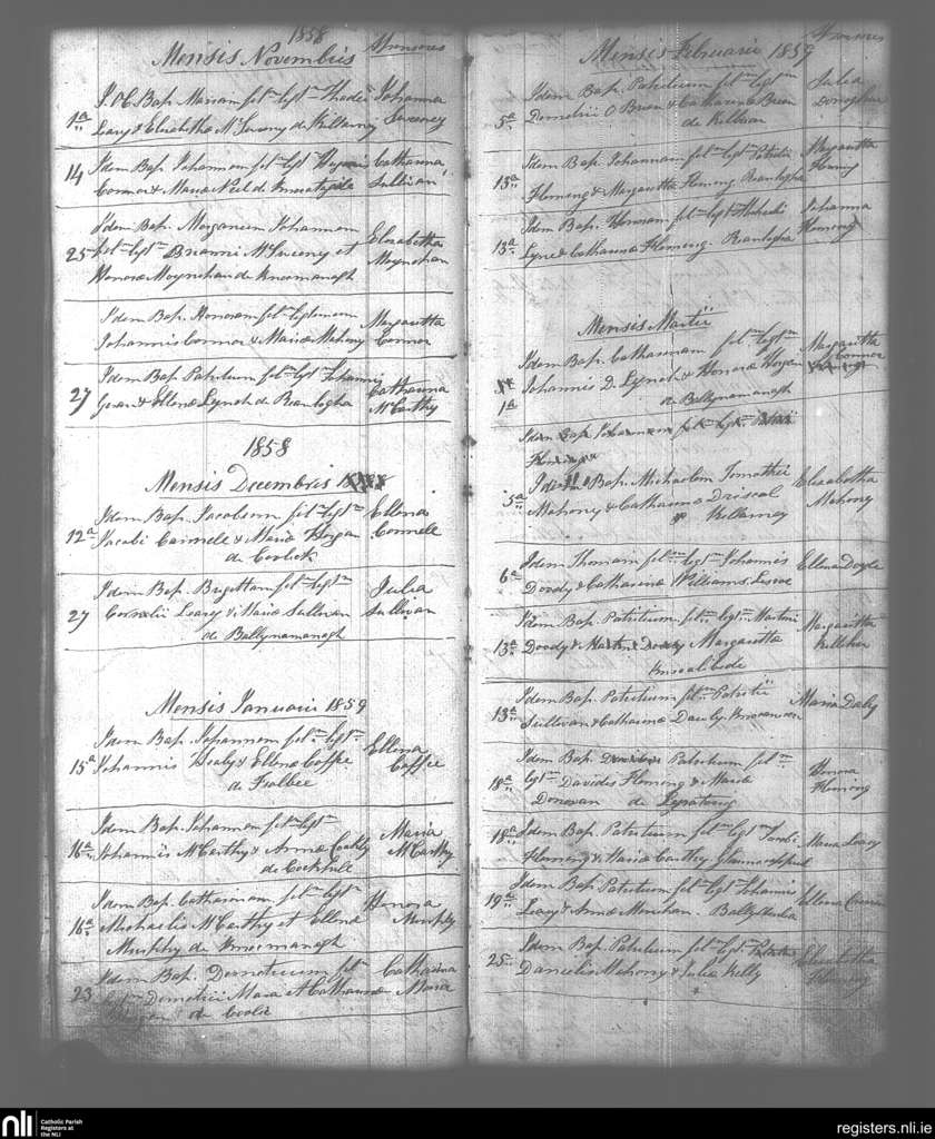 Kilcummin; County of Kerry; Diocese of Kerry. Baptisms, Nov. 1858 to Mar. 1859