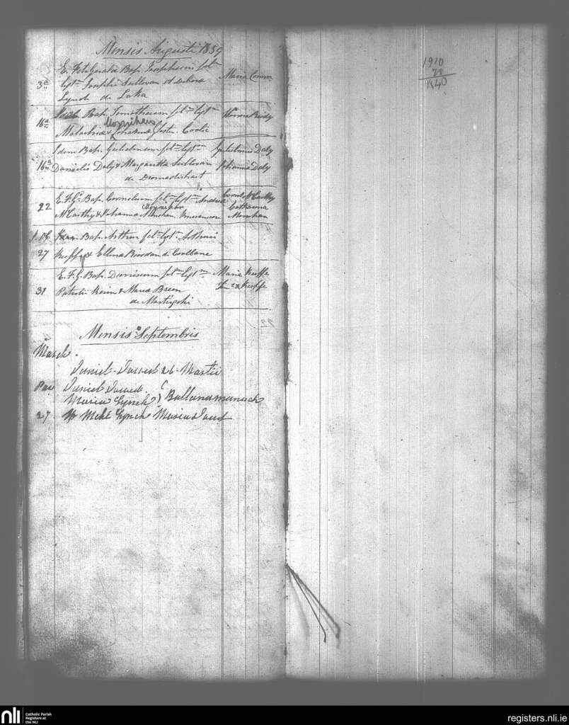 Kilcummin; County of Kerry; Diocese of Kerry. Baptisms, Aug. 1859 to Sep. 1859