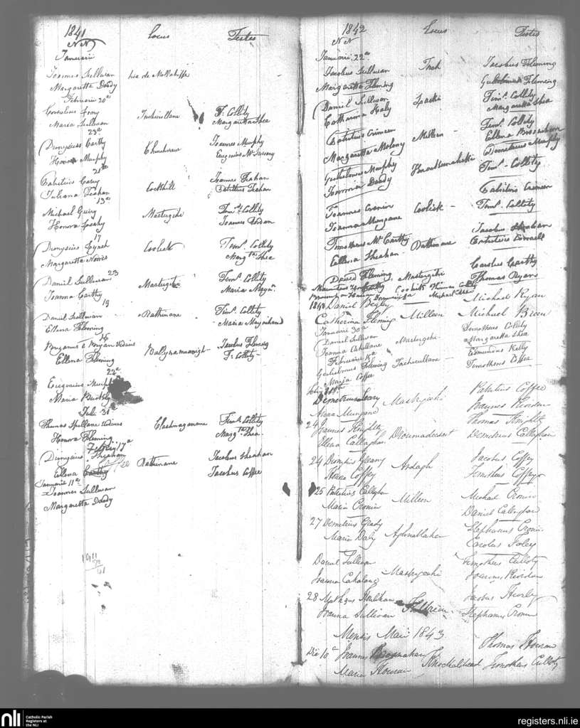 Kilcummin; County of Kerry; Diocese of Kerry. Marriages, Jan. 1841 to May 1843