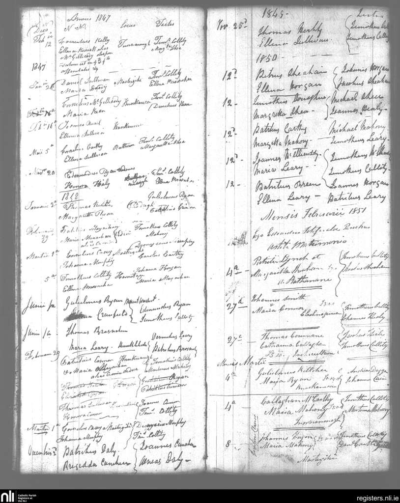 Kilcummin; County of Kerry; Diocese of Kerry. Marriages, Jan. 1847 to Mar. 1851