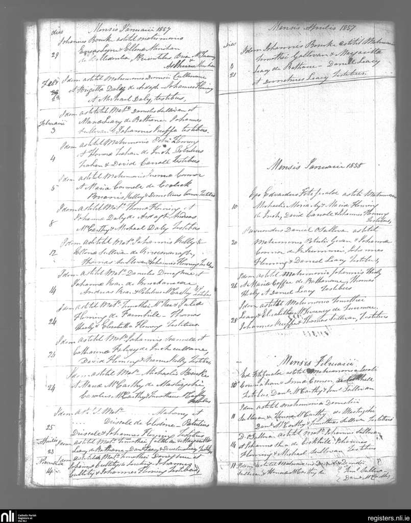 Kilcummin; County of Kerry; Diocese of Kerry. Marriages, Jan. 1857 to Feb. 1858