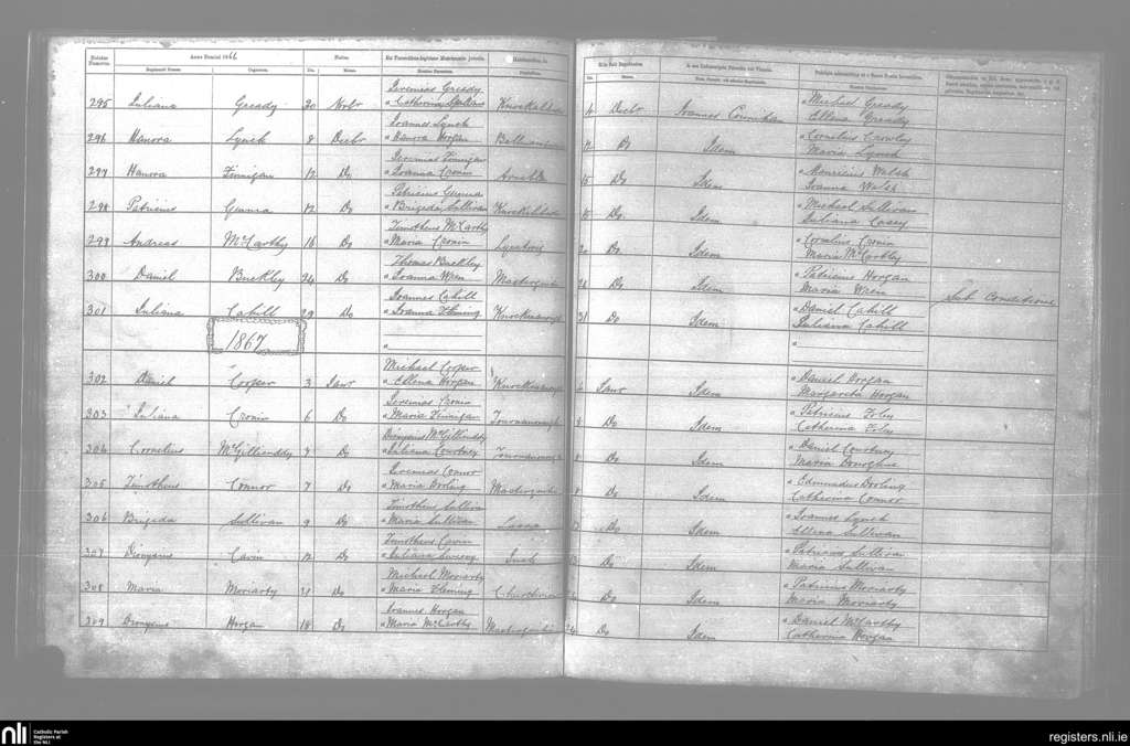 Kilcummin; County of Kerry; Diocese of Kerry. Baptisms, Dec. 1866 to Jan. 1867