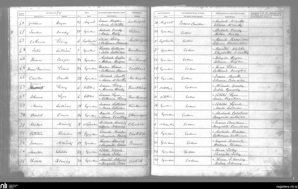 Kilcummin; County of Kerry; Diocese of Kerry. Baptisms, Aug. 1872 to Nov. 1872