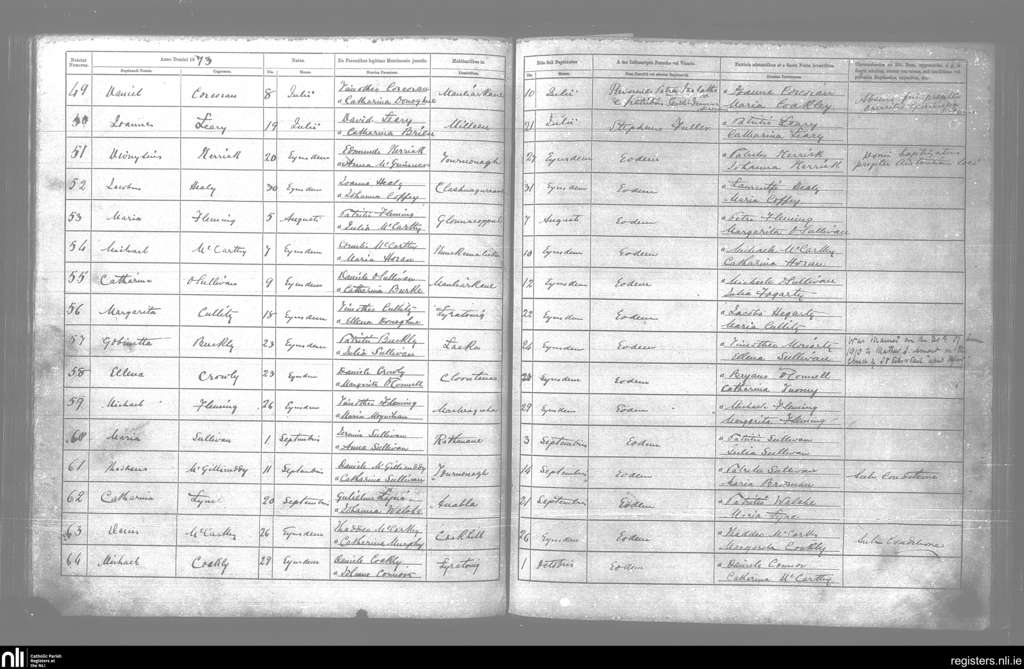 Kilcummin; County of Kerry; Diocese of Kerry. Baptisms, July 1873 to Oct. 1873