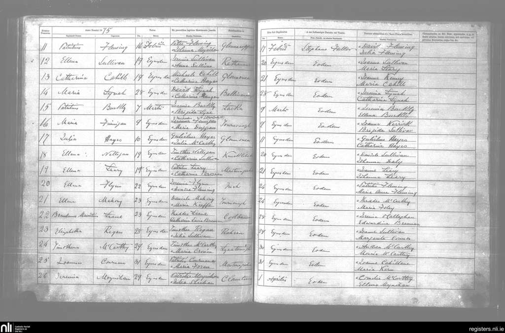 Kilcummin; County of Kerry; Diocese of Kerry. Baptisms, Feb. 1875 to Apr. 1875