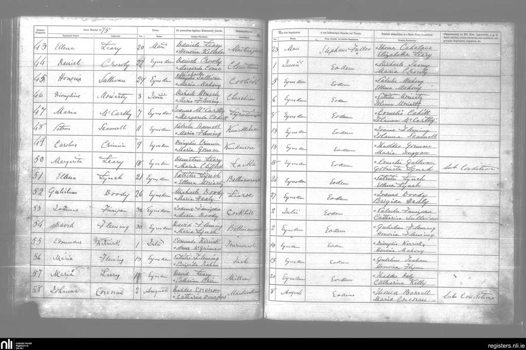 Kilcummin; County of Kerry; Diocese of Kerry. Baptisms, May 1875 to Aug. 1875