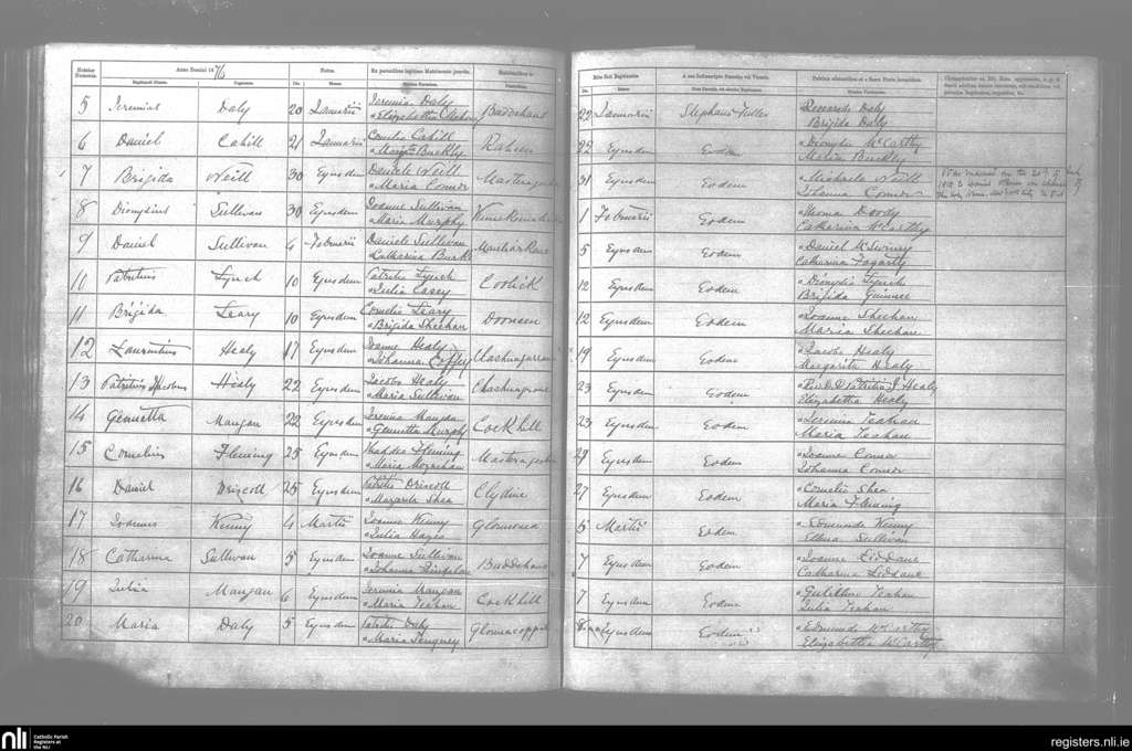 Kilcummin; County of Kerry; Diocese of Kerry. Baptisms, Jan. 1876 to Mar. 1876