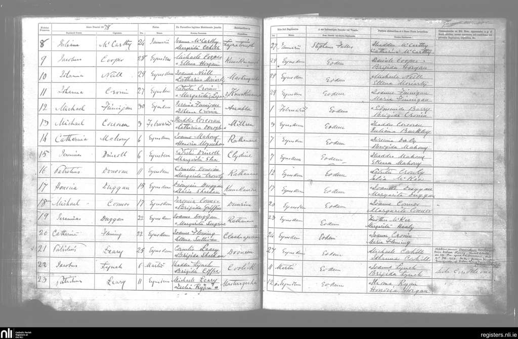 Kilcummin; County of Kerry; Diocese of Kerry. Baptisms, Jan. 1878 to Mar. 1878