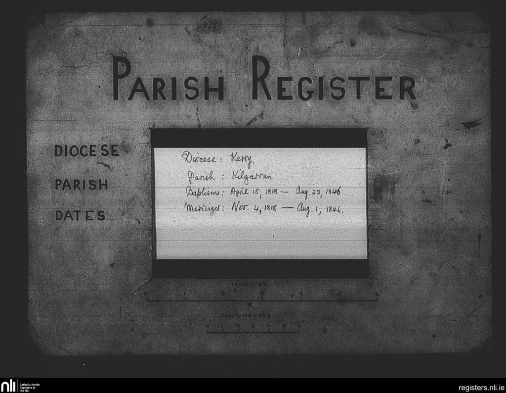 Kilgarvan; County of Kerry; Diocese of Kerry. Baptisms, Marriages
