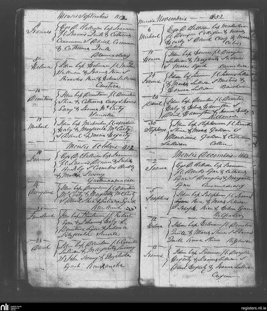 Kilgarvan; County of Kerry; Diocese of Kerry. Baptisms, Sep. 1852 to Dec. 1852