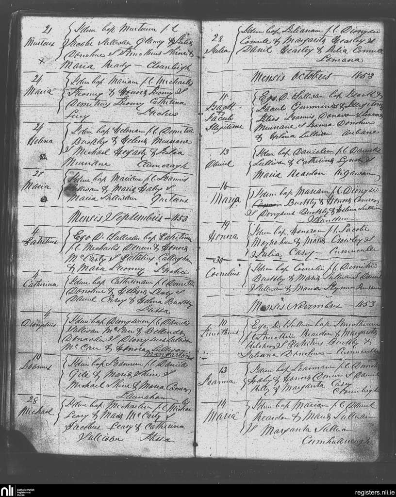 Kilgarvan; County of Kerry; Diocese of Kerry. Baptisms, Aug. 1853 to Nov. 1853
