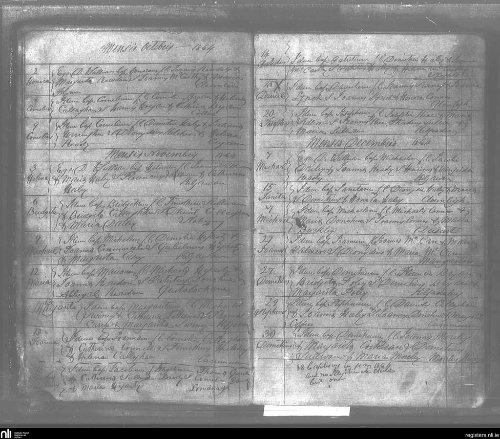 Kilgarvan; County of Kerry; Diocese of Kerry. Baptisms, Oct. 1864 to Dec. 1864