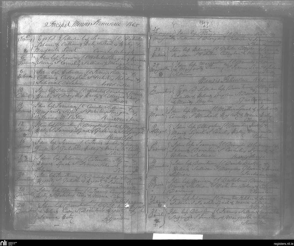 Kilgarvan; County of Kerry; Diocese of Kerry. Baptisms, Jan. 1865 to Feb. 1865