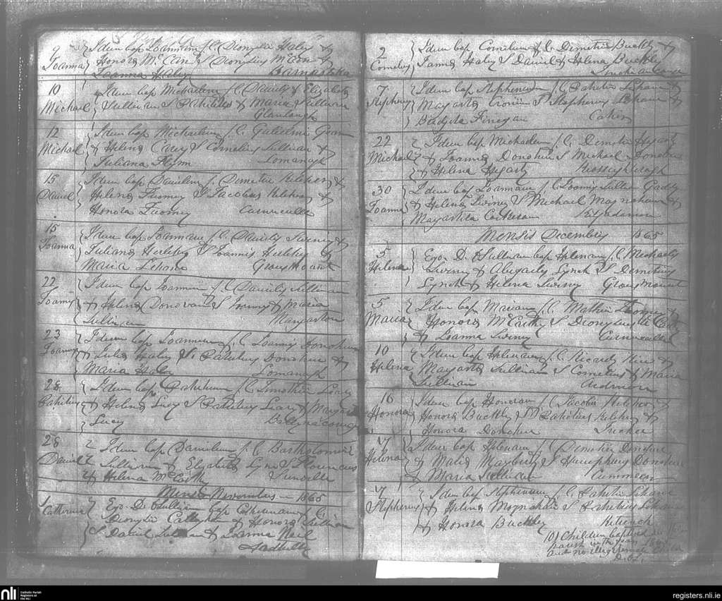 Kilgarvan; County of Kerry; Diocese of Kerry. Baptisms, Oct. 1865 to Dec. 1865