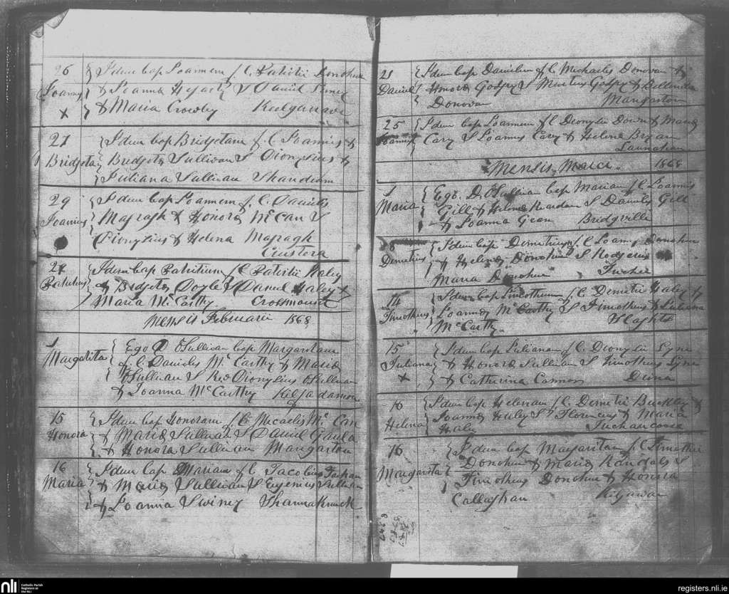 Kilgarvan; County of Kerry; Diocese of Kerry. Baptisms, Jan. 1868 to Mar. 1868