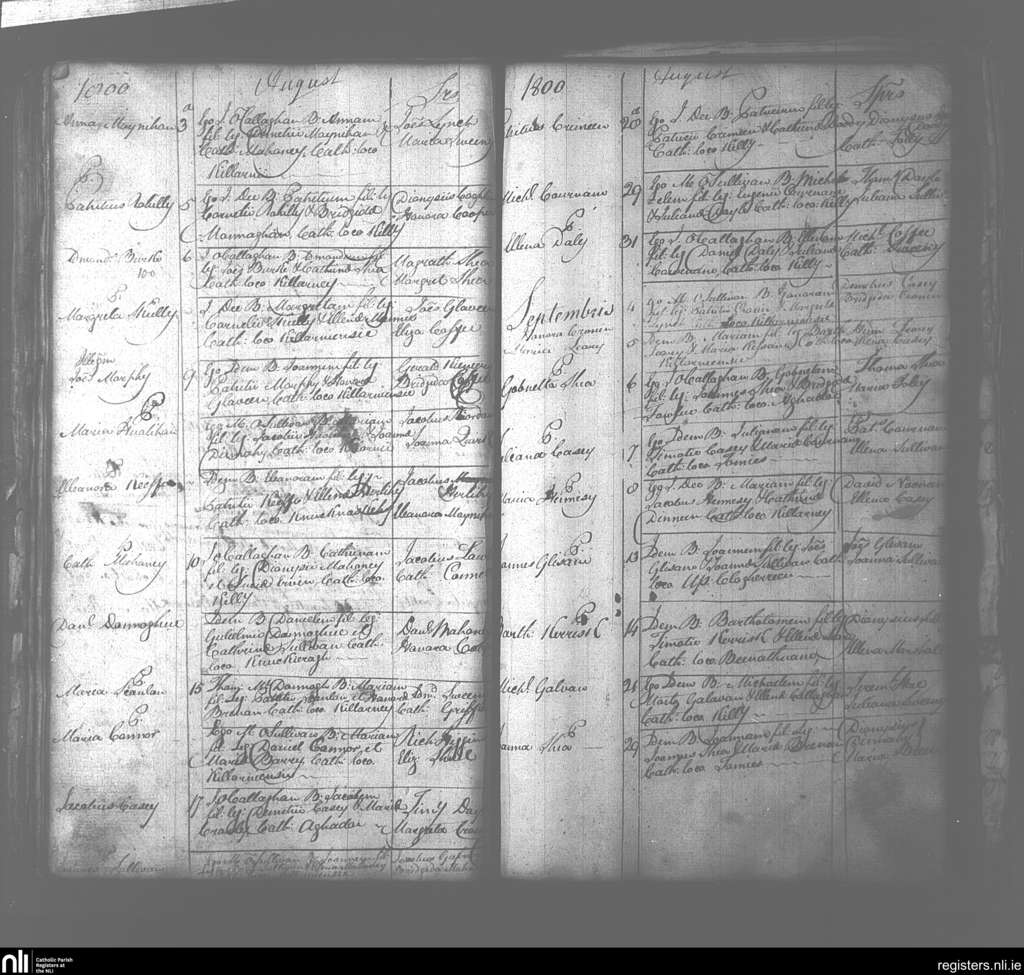 Killarney; County of Kerry; Diocese of Kerry. Baptisms, Aug. 1800 to Sep. 1800