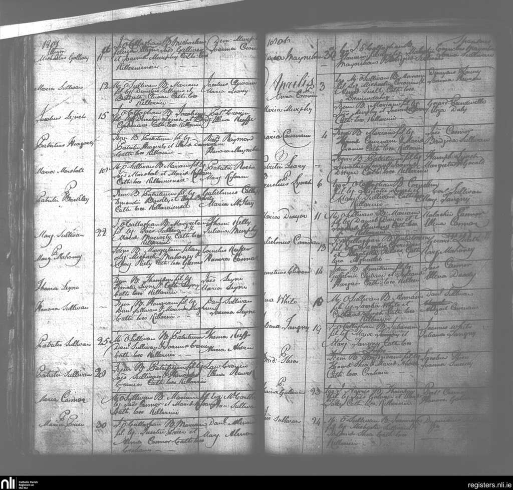Killarney; County of Kerry; Diocese of Kerry. Baptisms, Mar. 1801 to Apr. 1801
