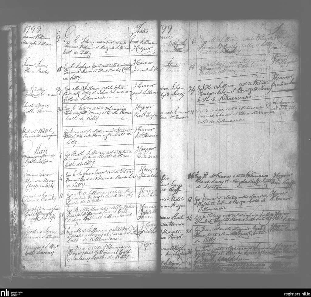 Killarney; County of Kerry; Diocese of Kerry. Marriages, Apr. 1799 to July 1799