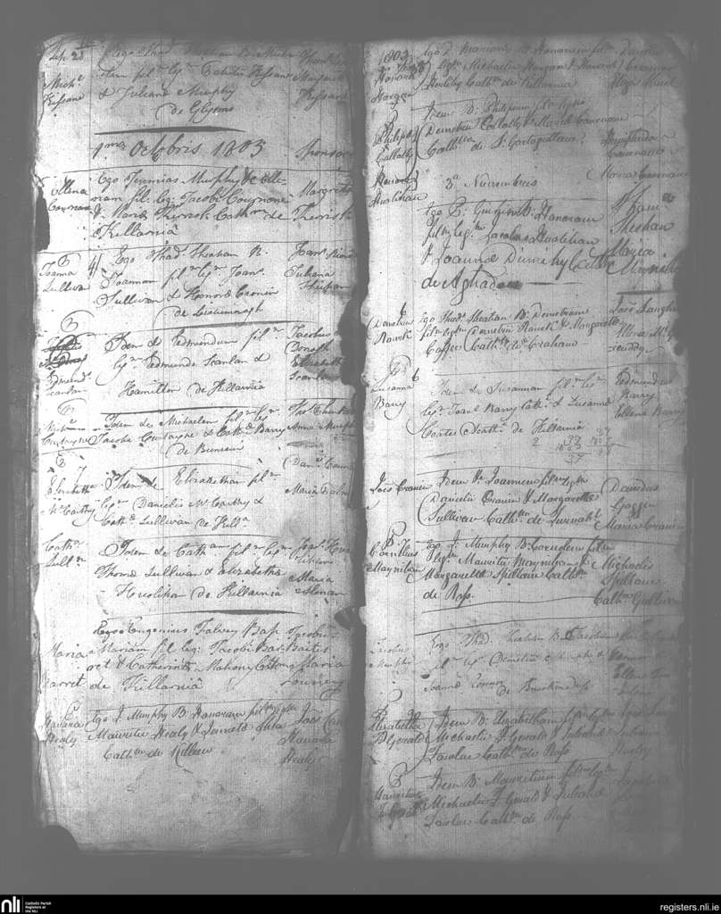 Killarney; County of Kerry; Diocese of Kerry. Baptisms, Sep. 1803 to Nov. 1803