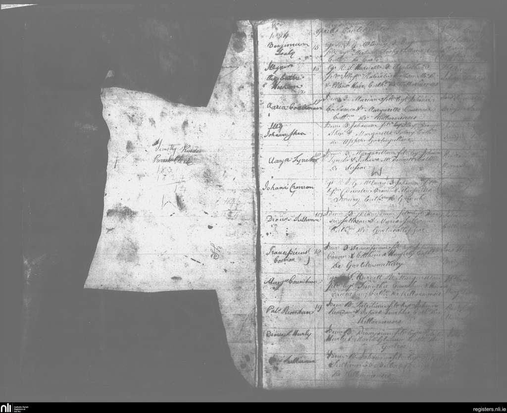 Killarney; County of Kerry; Diocese of Kerry. Baptisms, Apr. 1824